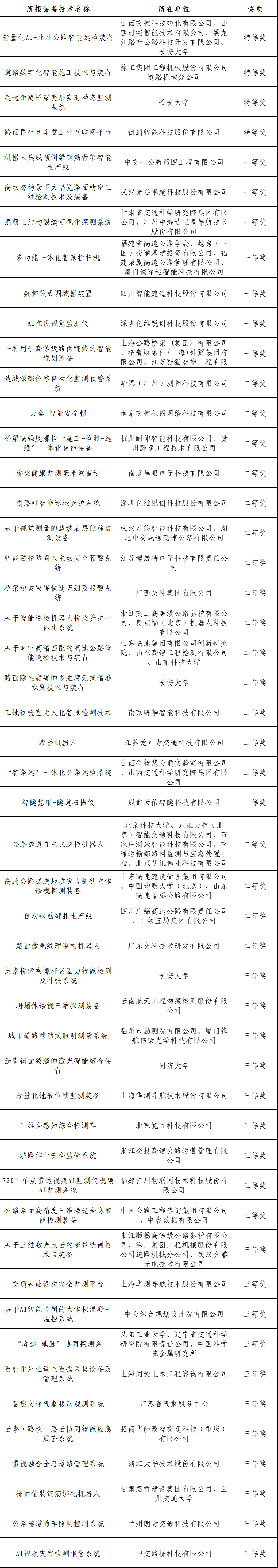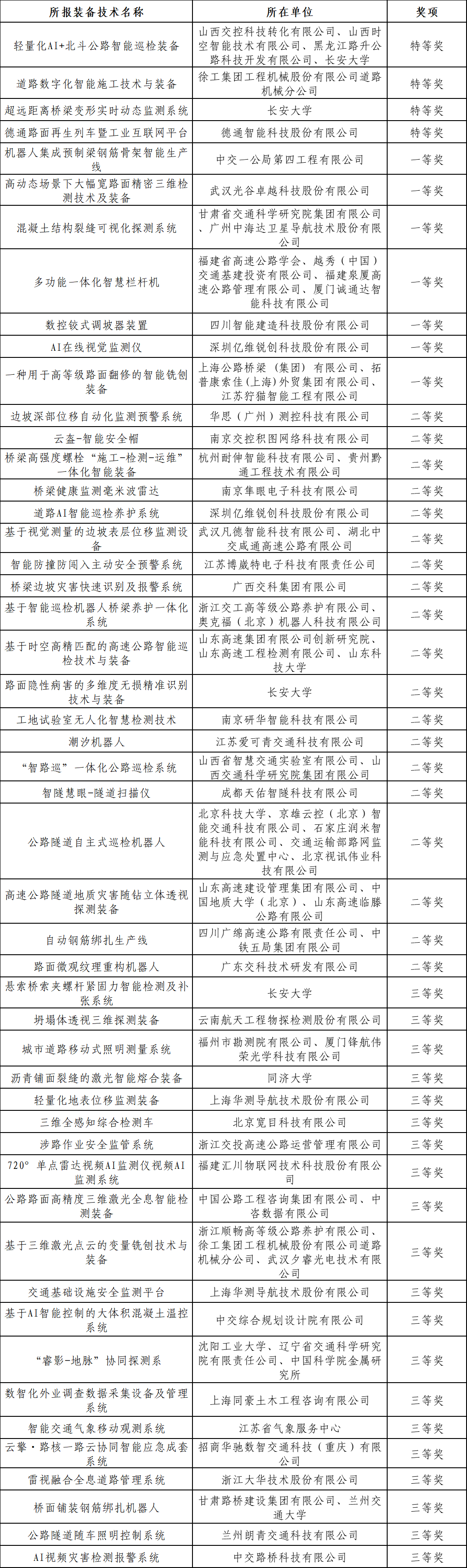 关于公布2025公路交通智能装备技术创新大赛获奖名单的通知