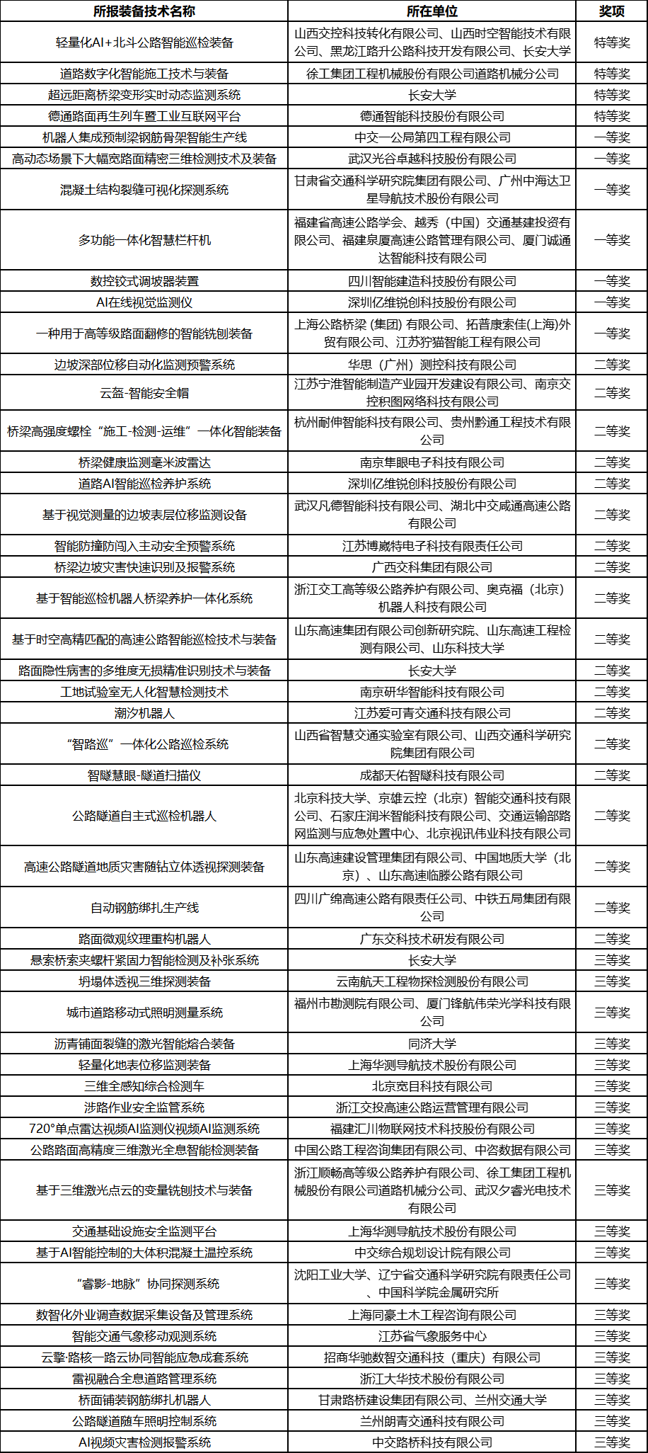 附件:2025公路交通智能装备技术创新大赛获奖名单