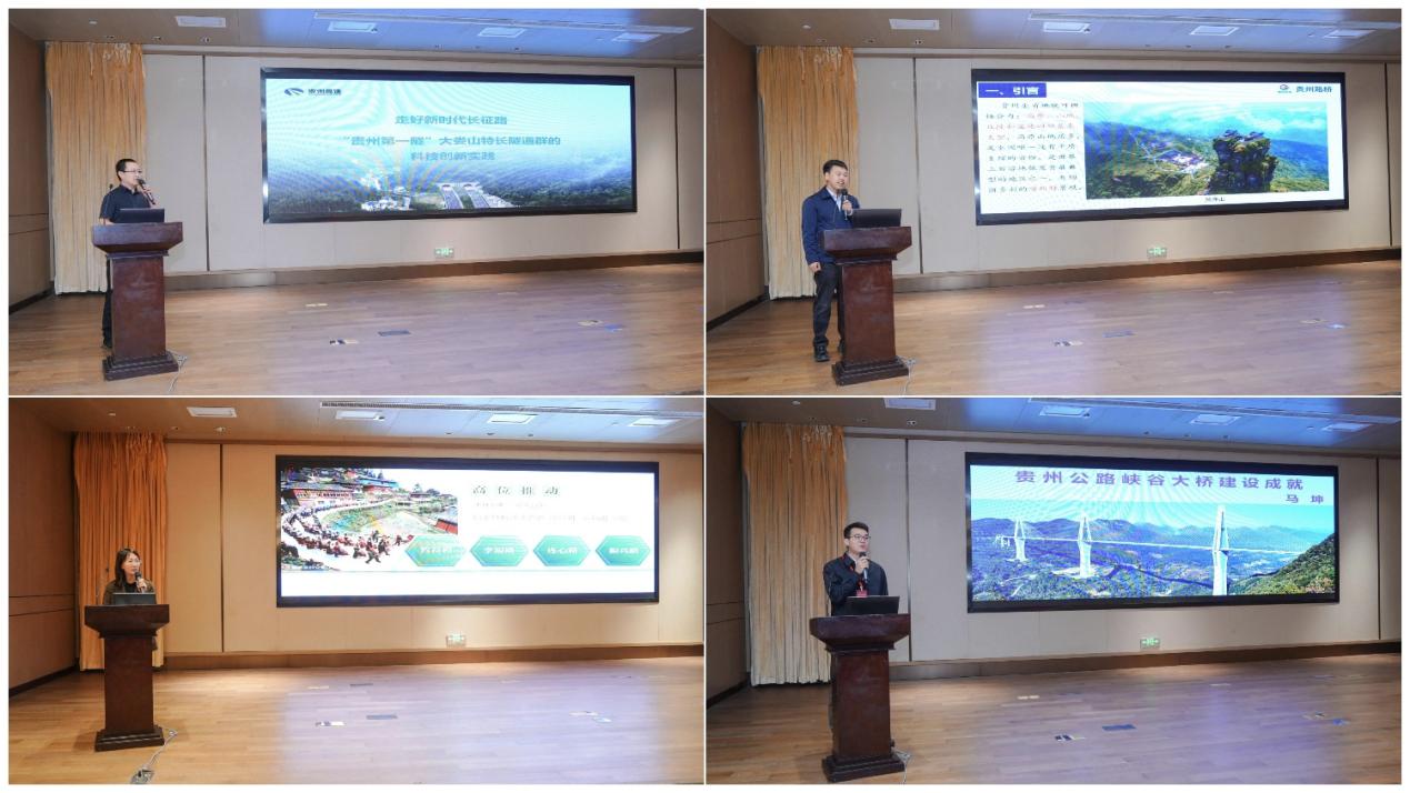 开幕式后,特邀专家贵州省交通规划勘察设计研究院股份有限公司桥梁分院总工程师马坤、中南交通科技有限公司安防工程高级工程师胥松、贵州路桥集团第五分公司副总经理、总工程师张基进、贵州省公路局农村公路处副处长、高级工程师刘艳分别作题为《贵州公路峡谷大桥建设成就》、《走好新时代长征路:“贵州第一隧”大娄山特长隧道群的科技创新实践》、《贵州山区公路拱桥建设发展与挑战》、《创新推动“四好农村路”共绘和美乡村新画卷》的精彩报告。