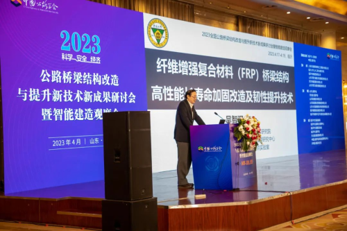 日本工程院外籍院士、欧洲科学与艺术院院士、东南大学教授吴智深带来主旨报告《纤维增强复合材料(FRP)桥梁结构 高性能长寿命加固改造及韧性提升技术》,介绍了FRP材料特性,分析各类FRP尤其是玄武岩纤维增强复合材料的高性能化技术及其稳定的各类高性能制品。介绍了基于不同FRP 制品及应用形式的桥梁高性能长寿命及韧性化加固提升技术,包括纤维布加固技术、FRP网格加固技术、预应力FRP加固技术和智能FRP加固技术。分析了相应的加固原理和技术优势,并对桥梁结构加固设计与施工给出了建议。