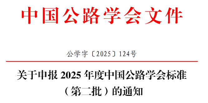 关于申报2025年度中国公路学会标准 (第二批)的通知