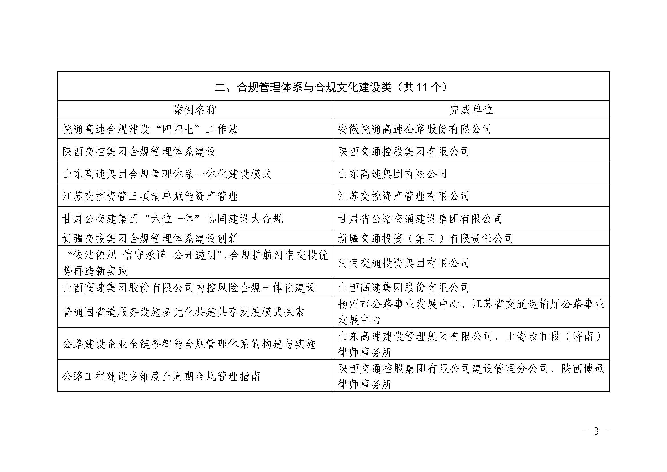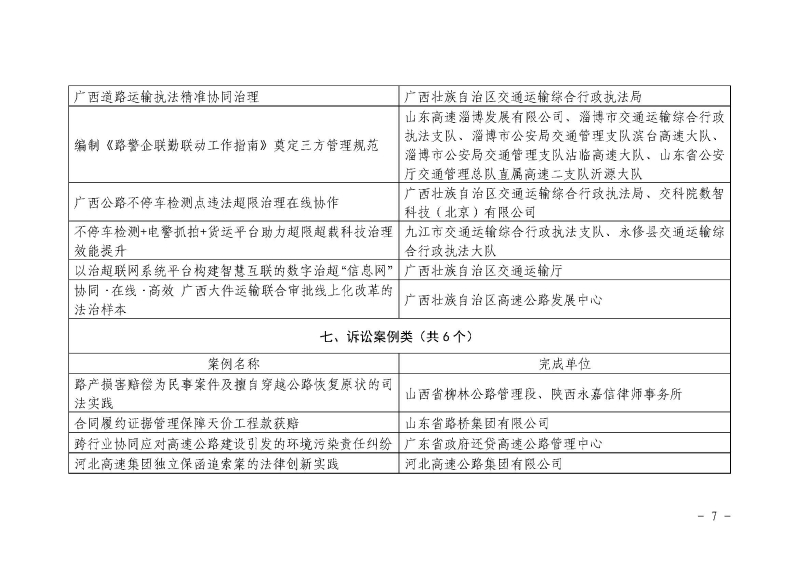 希望案例入选单位能够再接再厉,持续提升法治工作能力与水平,探索更多具有可借鉴性、可复制性的优秀法治经验,为公路交通法治事业高质量发展提供重要参考。