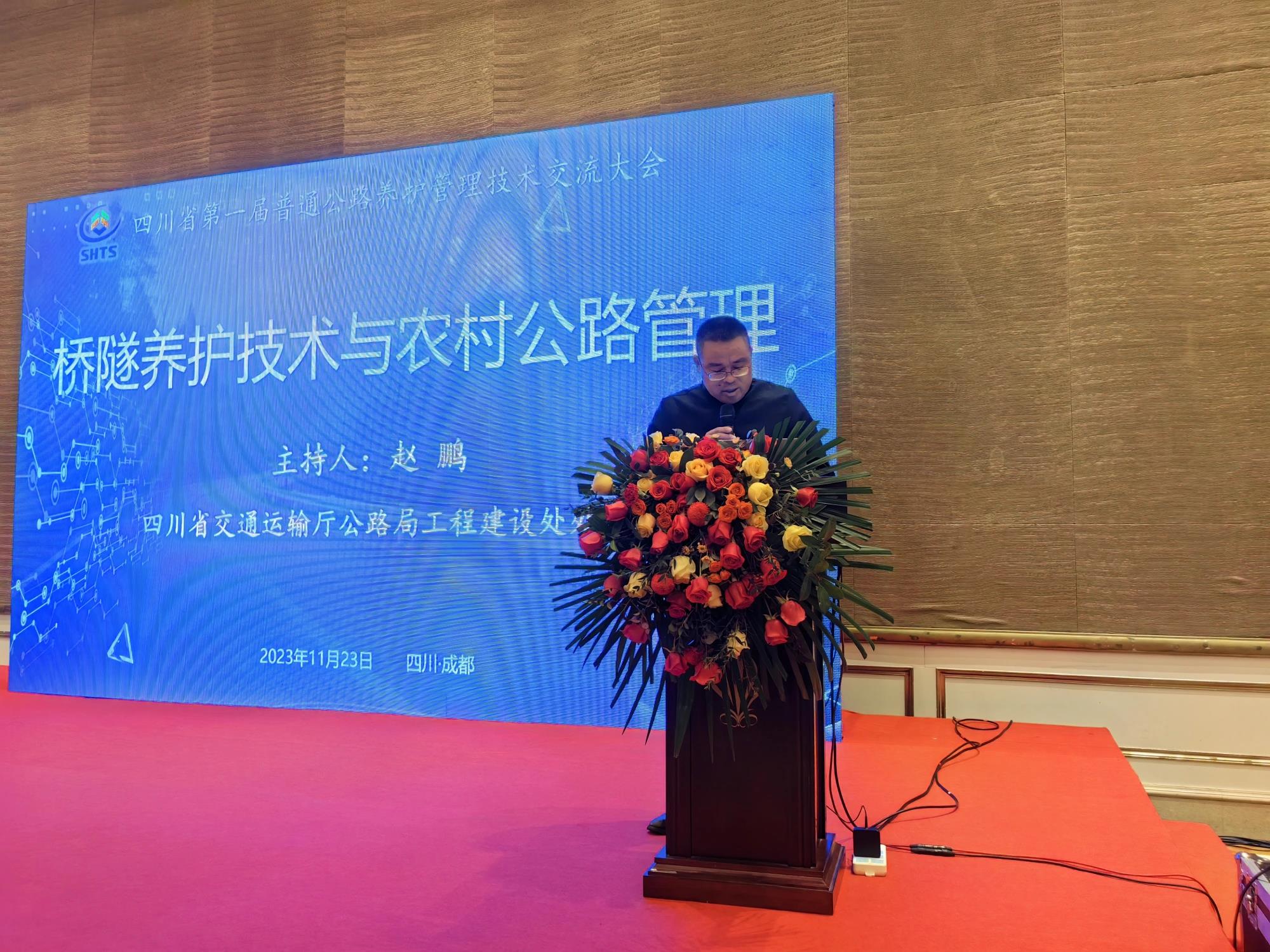 (四川省交通运输厅公路局工程建设处处长赵鹏主持桥隧养护技术与农村公路管理报告会)