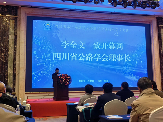 大会开幕式由四川省公路学会道路专业委员会主任谢能剑主持,四川省公路学会李全文理事长致开幕词,四川省交通运输厅公路局党委委员、总工程师李林代表交通运输厅公路局党委书记、局长屈洪斌做了书面讲话。