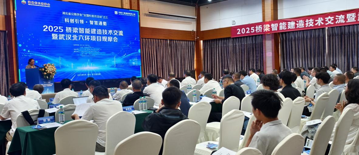 9月27日下午,“2025桥梁智能建造技术交流暨武汉北六环项目观摩会”在武汉盘龙城召开。本次活动为湖北公路学会“2025全国科普活动月”线下活动之二,与中建三局集团有限公司联合主办,武汉交通工程建设投资集团有限公司协办。来自全省各市州公路学会、武汉市各会员单位、相关高校科研院所的150余名科技工作者参加了活动,湖北省交通运输厅工程事务中心领导出席会议。