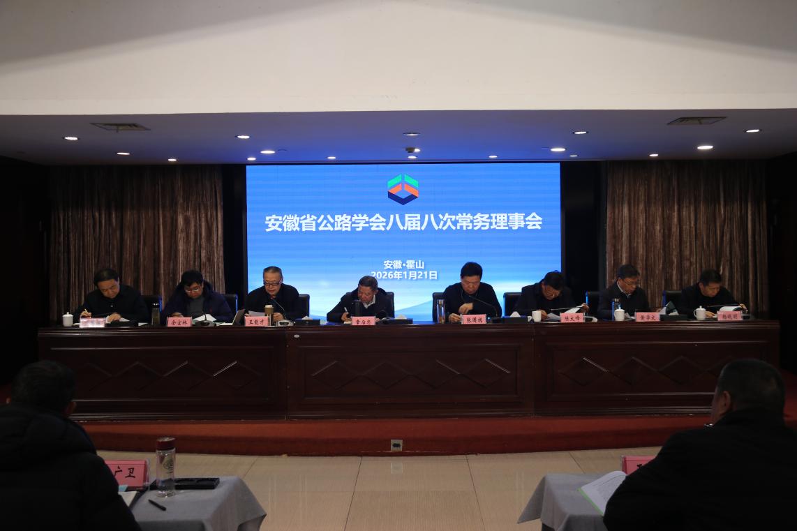 2026年1月21日,安徽省公路学会八届八次常务理事会在霍山召开,学会八届理事会全体常务理事(或代表)、监事及学会秘书处部门负责人参会。